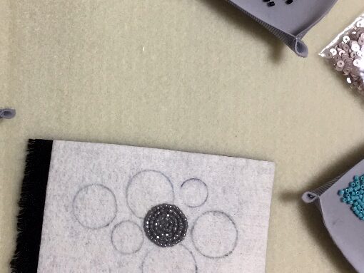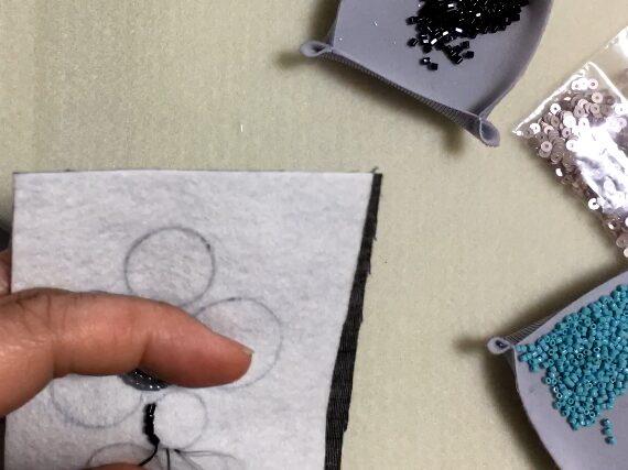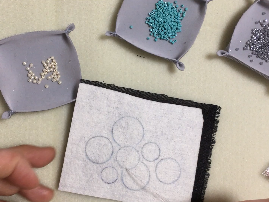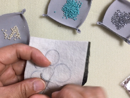 私の場合、初めは適当にビーズを配置していましたが、デザインの基礎を学ぶとともに、まずはシンプルな雲の形を何度も練習し、失敗を重ねるうちに、バックステッチで美しい曲線を描く方法を見いだしました。