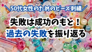 基礎知識 【失敗は成功のもと!】50代女性のためのビーズ刺繍失敗作品を振り返る 40代を迎えてから、ふと「なにか新しい趣味を始めたい」と思い立ち、ビーズ刺繍にチャレンジしました。最初は道具の使い方も分からず、夜な夜なリビングテーブルで悪戦苦闘。完成した作品を家族に作品を見せると、「ちょっと歪んでるね」と正直な感想が返っ... 2025.05.17 基礎知識