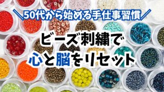 ライフスタイル ビーズ刺繍で心と脳をリセット! 50代から始める集中力UP&癒しの手仕事習慣 私がビーズ刺繍を始めたのは、ちょうど50歳の春を迎えるころでした。子育てがひと段落し、自分だけの時間と心の余裕を取り戻したいと願う一方で、買い物リストを忘れたり、待ち合わせ時間を勘違いしたりという小さなつまずきが増え、まるで自分の頭の中が散... 2025.06.29 ライフスタイル